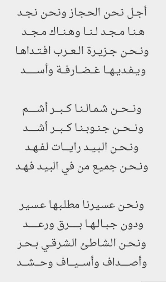 وليد V Twitter نحن الحـجـاز ونـحـن نـجــد هنا مجد لنا وهناك مجد ونحن شمالنا ونحن جنوبنا ونـحـن عسـيـرنـا ونحن الـشـاطئ الـشرقي بحر وأصداف واسياف وحشد Https T Co Ey5xjjfqhl