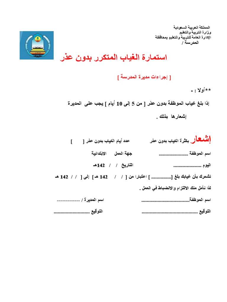 إجراءات التعامل مع حالات الغياب بدون عذر وتأثيرها على الموظف ة ملتقى المعلمين والمعلمات