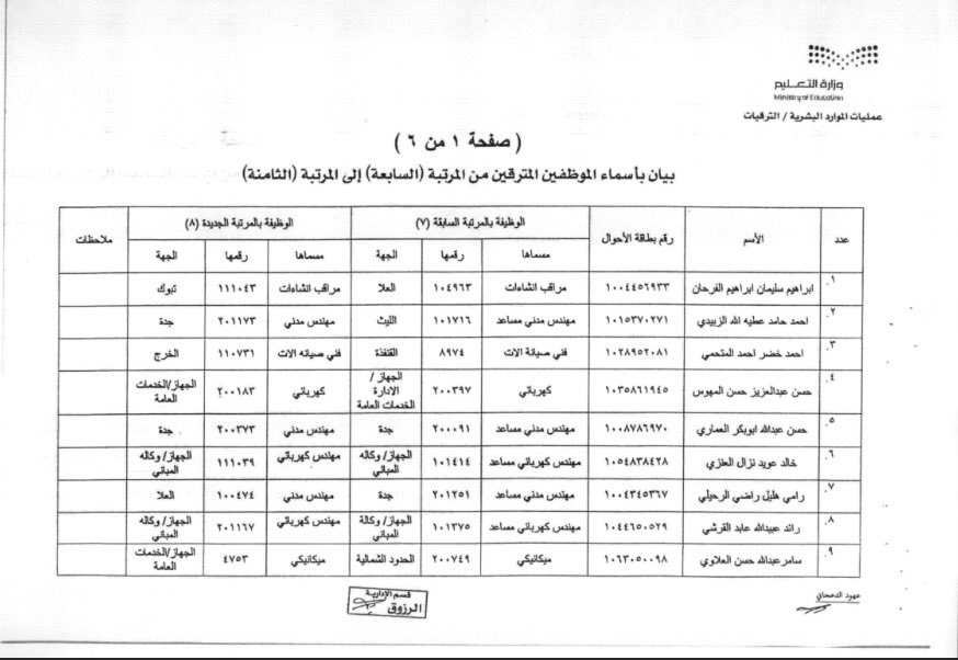 نظام فارس A Twitter 1 قرار ترقية موظفين من المرتبة السابعة الى المرتبة الثامنة الترقيات الموظفين وزارة التعليم يتبع
