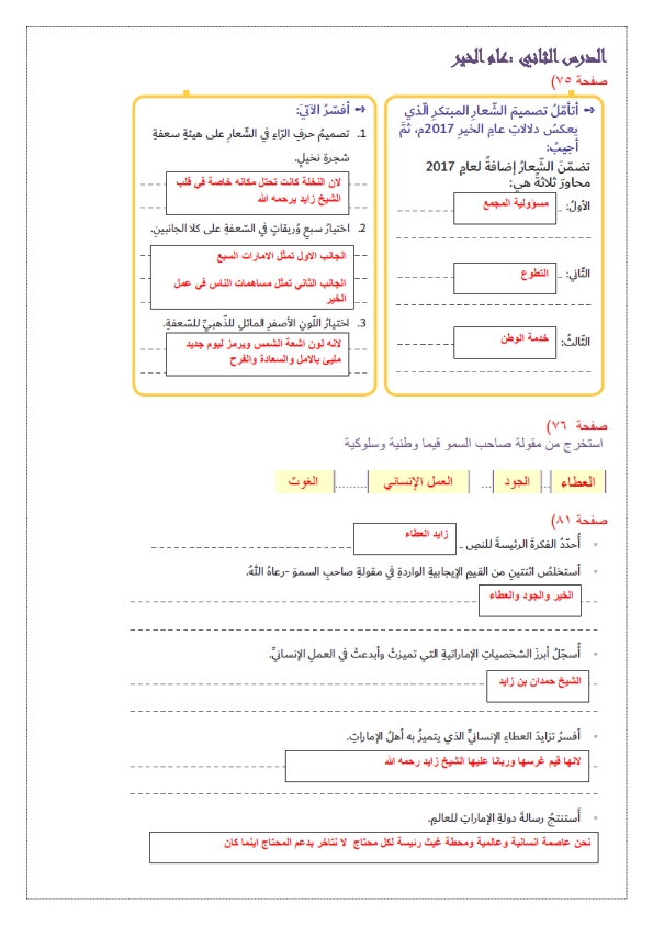 مدونة تعلم اوراق عمل مع الحل درس عام الخير الصف السادس الفصل الدراسي الاول