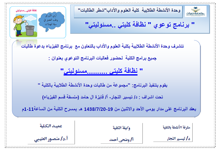 بيان تنفيذ برامج خطة النشاط الطلابي 1438 1439 Youtube