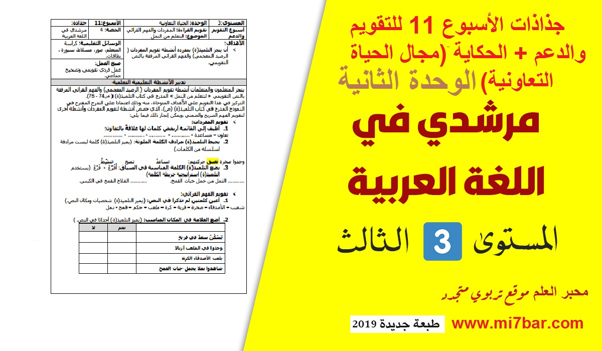 جذاذات أسبوع التقويم والدعم للوحدة الثانية مرشدي في اللغة العربية المستوى الثالث ابتدائي المنهج المنقح