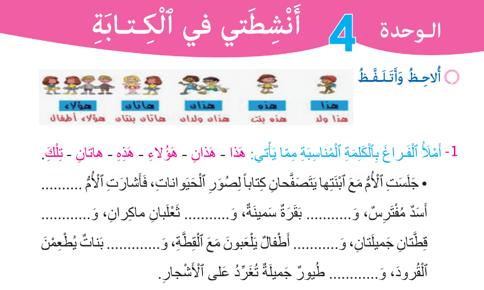 أنشطة داعمة في اللغة العربية المستوى الثالث ابتدائي