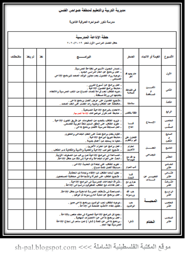 خطة الإذاعة المدرسية المكتبة الفلسطينية الشاملة