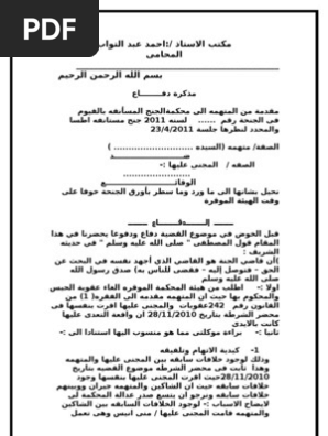 مذكرة بدفاع نموذج مذكرة دفاع Doc