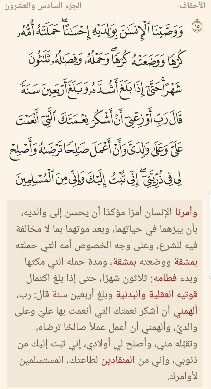 Quran Surah Al Ahqaf 15 Qs 46 15 In Arabic And English Translation Alquran English